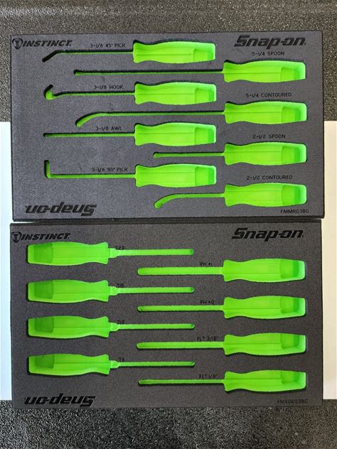 Snap-On Tools 2Pc GREEN FOAM ORGANIZERS For Mini Screwdriver / Pick / Seal Sets