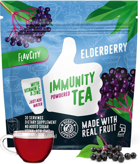 Flavcity Immunity Tea Powder - Vitamin C, Zinc, & Elderberry Herbal Tea For Immune Support - Non GMO & Sugar Free (30 Servings)