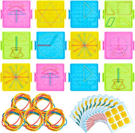 Deekin 50 Pcs Double Sided Geoboard Mathematical Kids Geoboards With Rubber Bands Math Manipulatives Toy For Geometry, 6.9 X 6.3 Inches Classroom Back