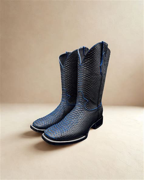 Handcrafted Men's Blue Python Cowboy Boots/ Square Toe Cowboy Boots Snake/ Men's Exotic Boots/ Botas Vaqueras Exoticas/ Men's Cowboy Boots