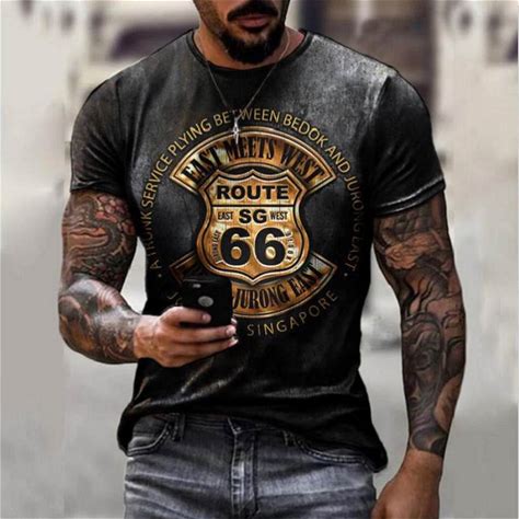 Men's Vintage Loose Route 66 Letter Print Short Sleeve T-Shirt